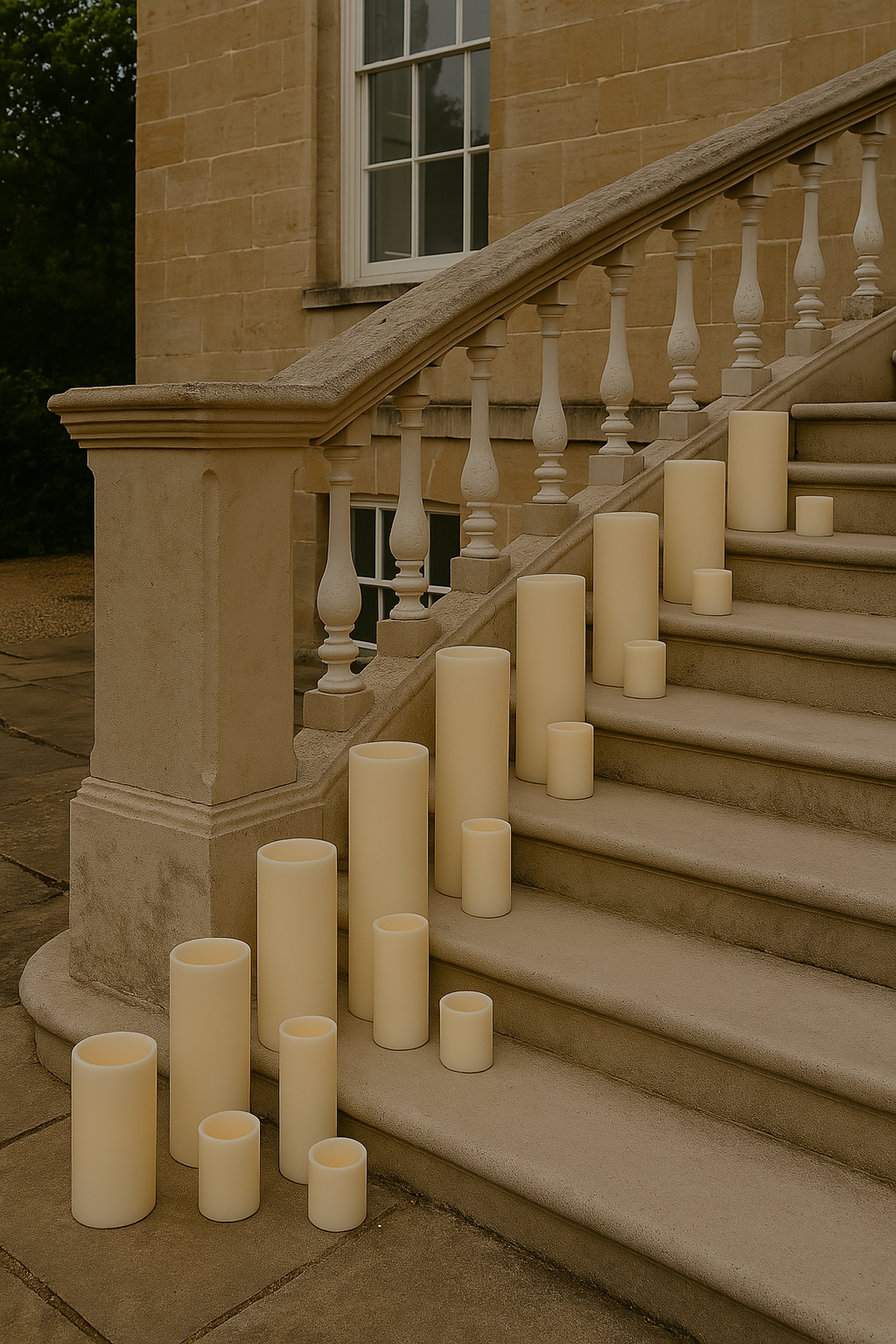 Transform your wedding or luxury event across Kent's most beautiful venues. From intimate ceremonies in Canterbury's historic gardens to grand receptions in Tunbridge Wells' elegant manor houses, our handcrafted wax luminaries create unforgettable ambiance.