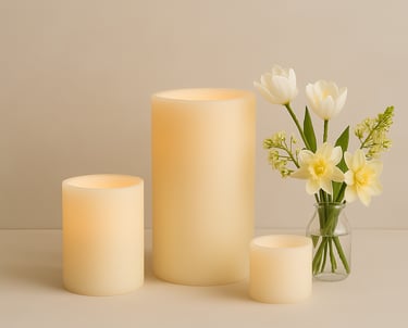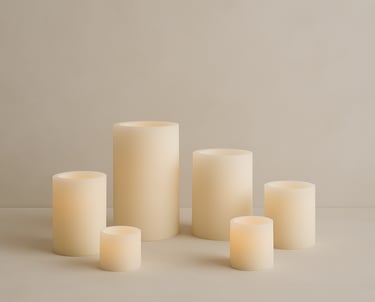 We use only premium natural wax and traditional crafting techniques, creating luminaries with genuine warmth and character that electronic lighting cannot replicate.