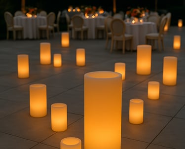 Our artisan wax luminaries transform venues into enchanting dreamlike settings, perfect for weddings, corporate galas, and exclusive events, ensuring a memorable experience for all attendees.